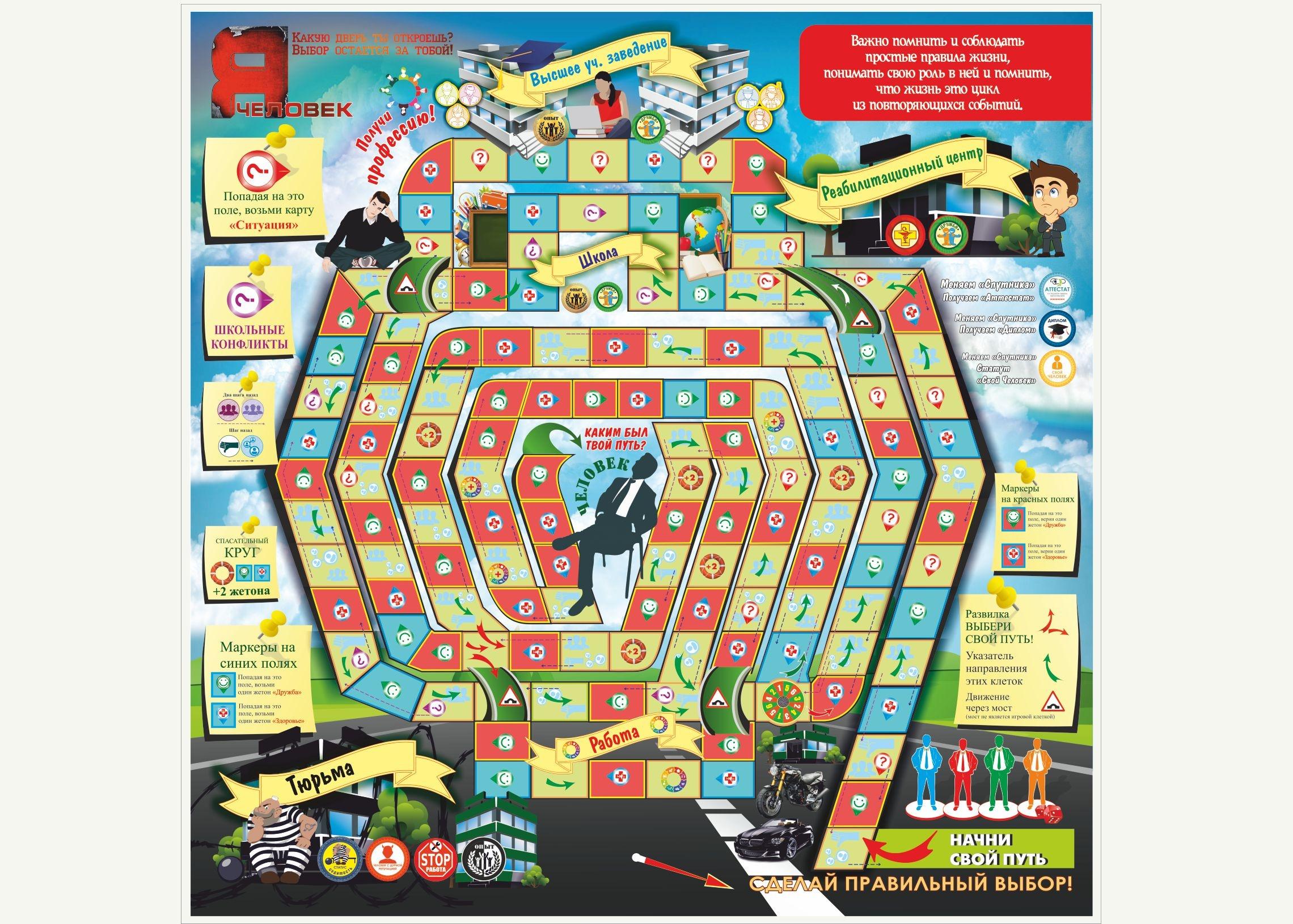 ● Формат. Игра выполнена в формате настольной социально-психологической игры-навигатора, которая проводит участника по различным жизненным сценариям.